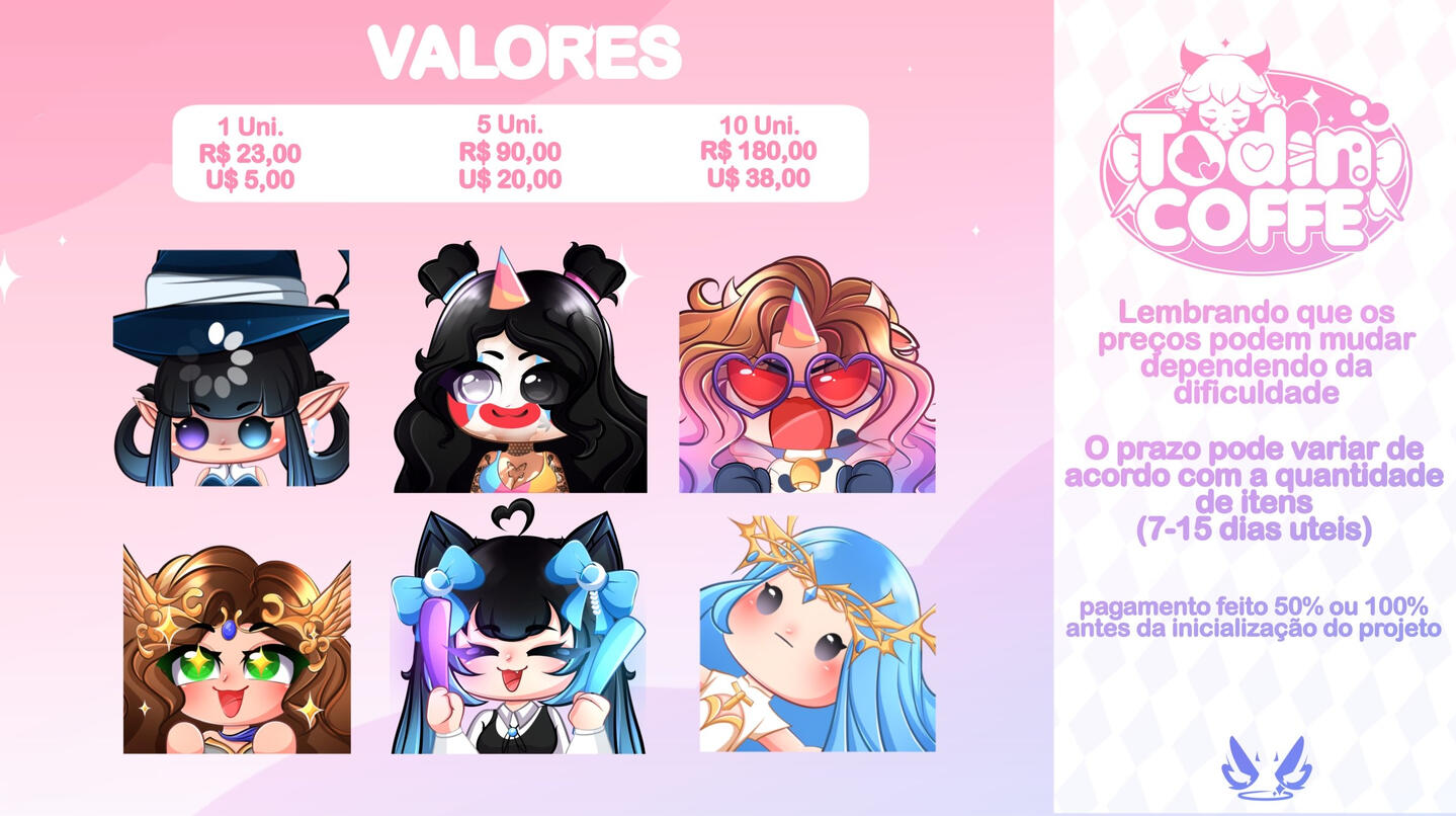 Lembrando que esses preços são apenas um valor base,dependendo do modelo,expressões e complexidade,pode haver uma diferença no valor final <3